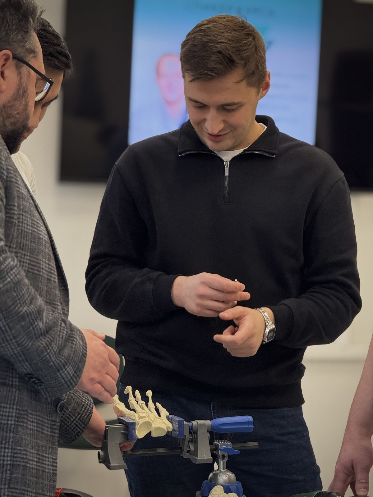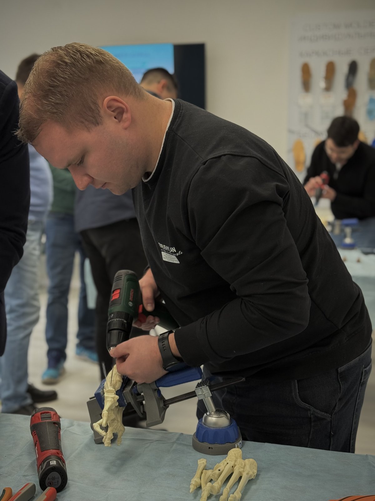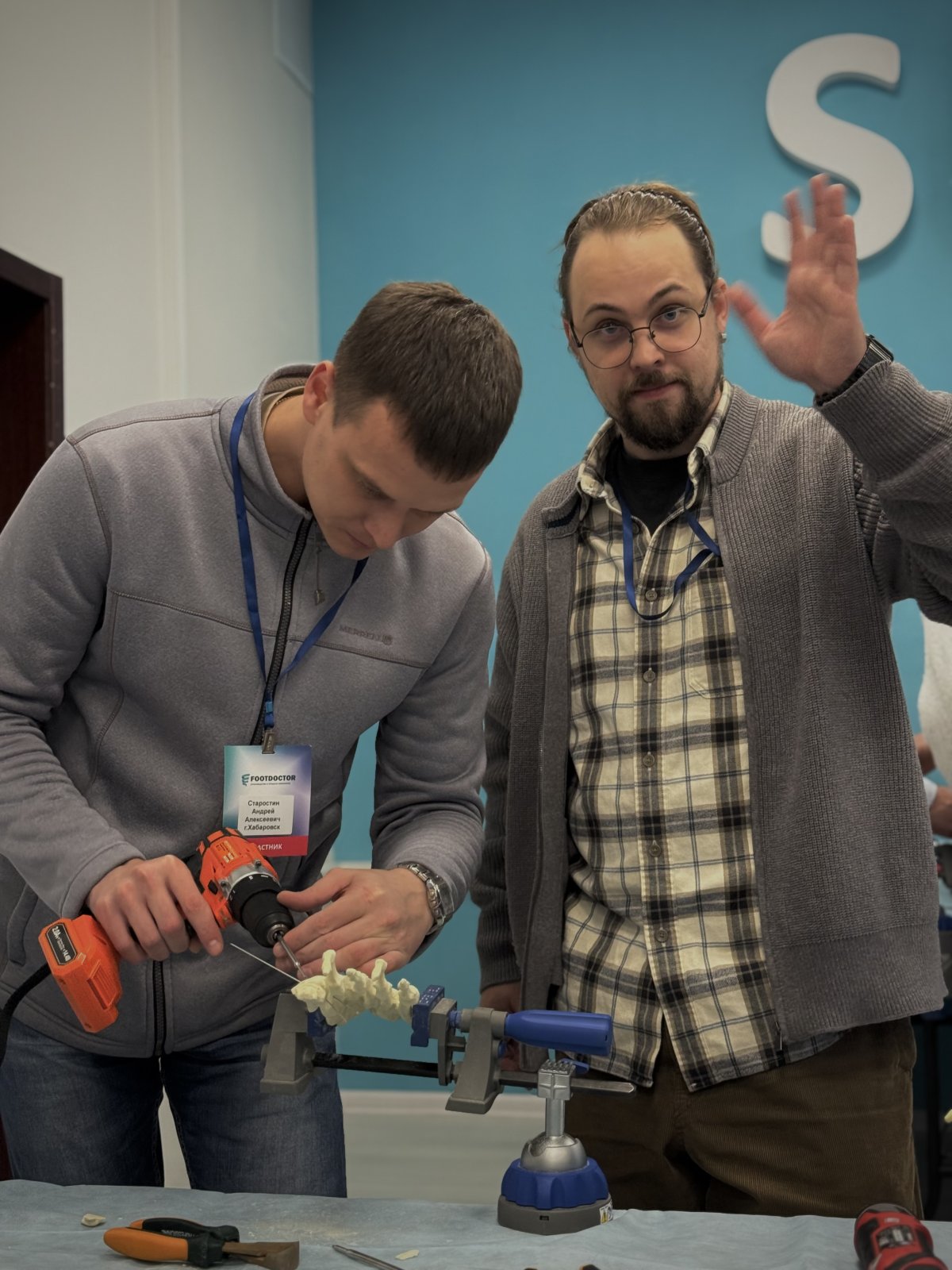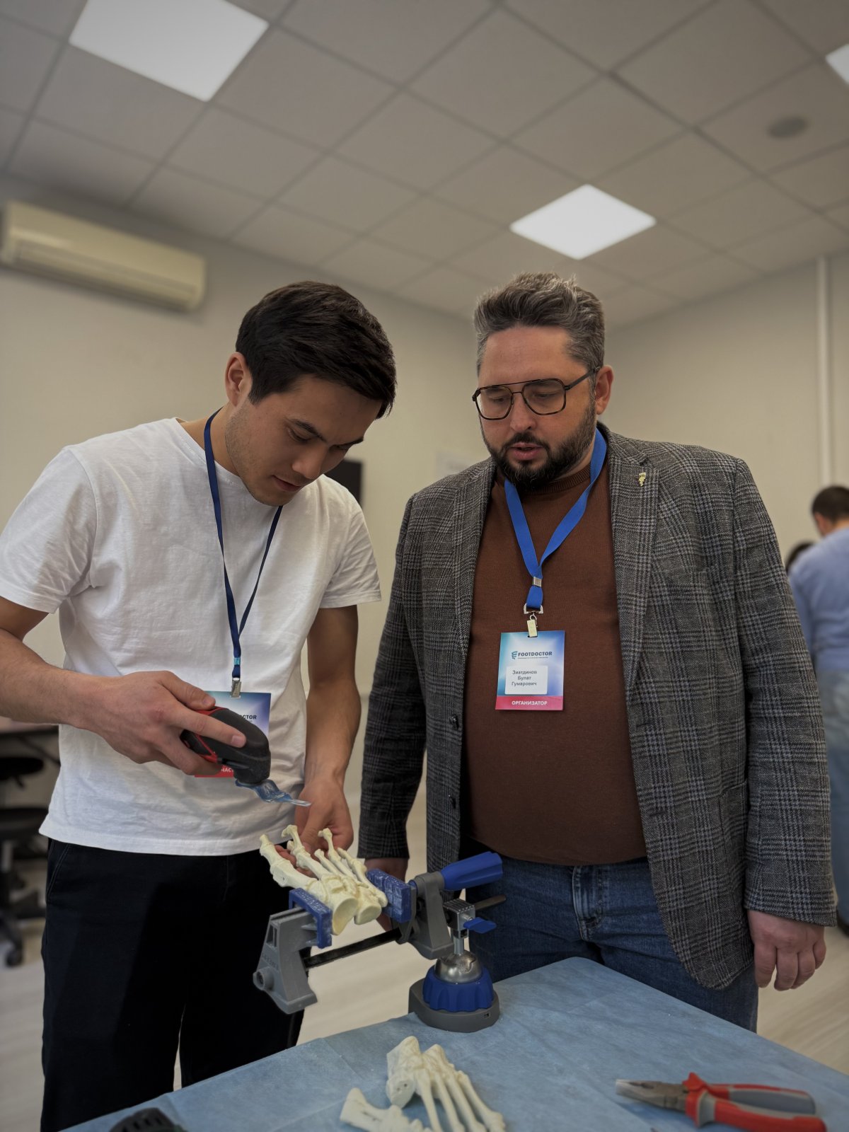 13 и 14 декабря состоялся базовый курс от компании «Футдоктор», который объединил в себе теоретические лекции и практическую отработку навыков на пластиковых стопах. Участники курса получили уникальную возможность не только углубить свои знания в области ортопедии, но и закрепить их на практике, работая с современными моделями стоп.
